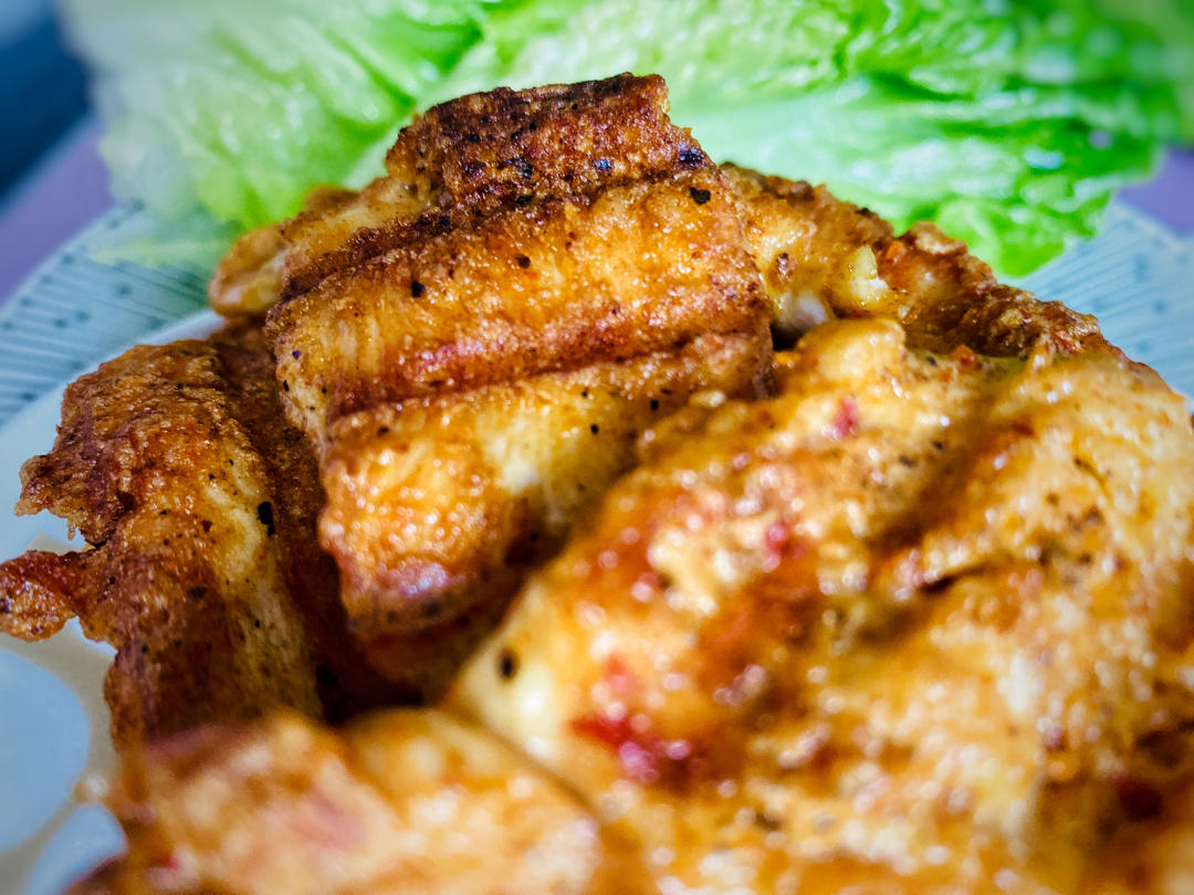 料酒,盐,白胡椒,黑胡椒,孜然粒,辣椒干料腌制鸡片入味,1H后放入蛋清,少许淀粉煎制😋😋😋