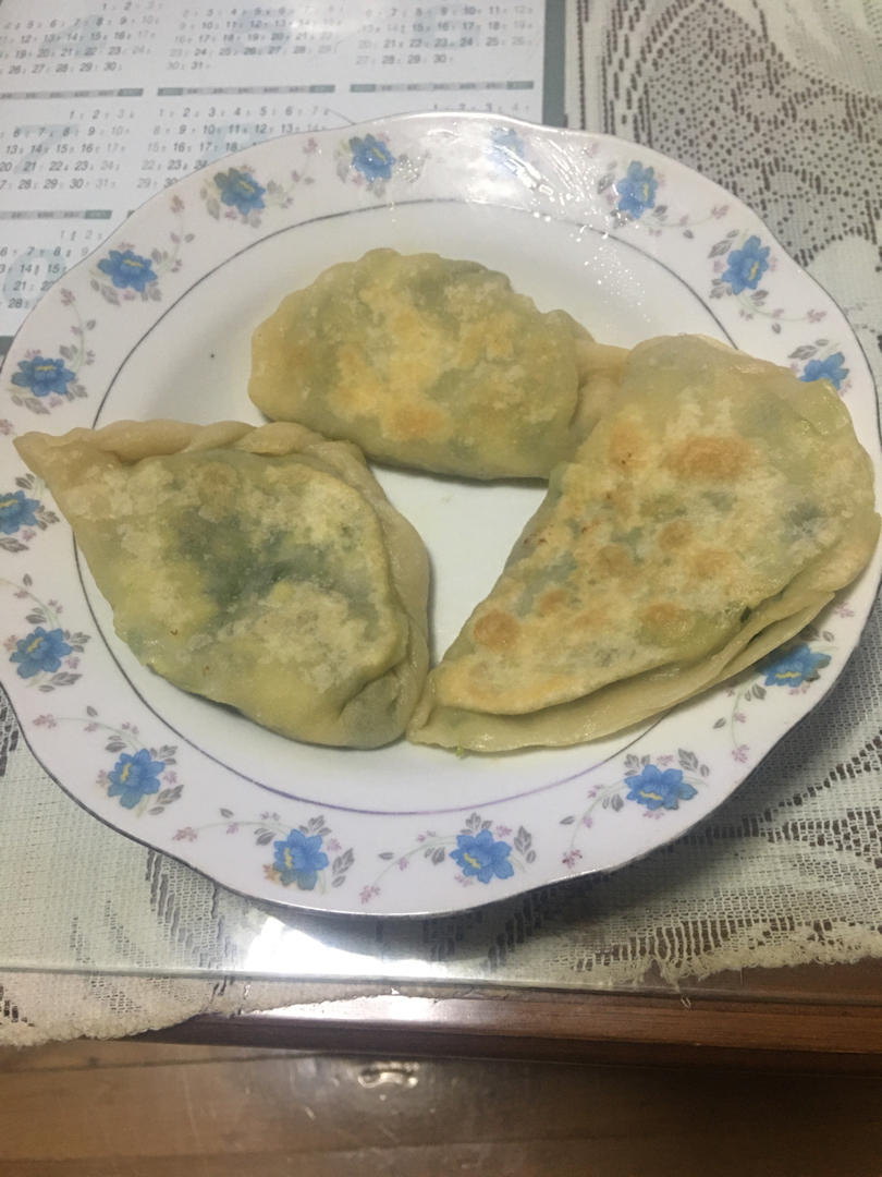 6个韭菜盒子。3个不捏边的都开口了!不过比捏边的好吃😋