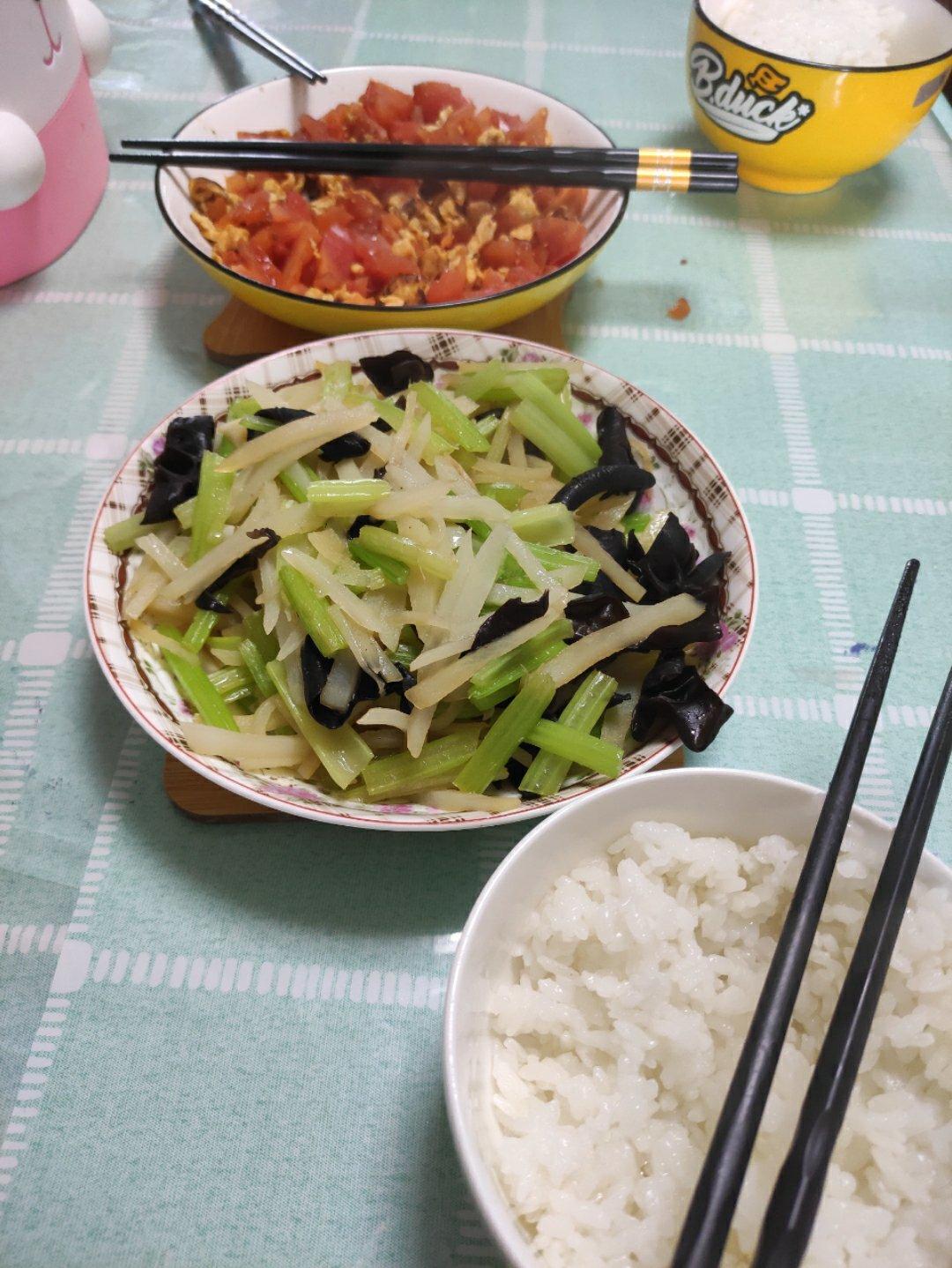 今天周日小雨淅淅沥沥的,中午吃米饭和菜,金针菇蛋汤,她说这个汤没学校的好喝,还有进步空间