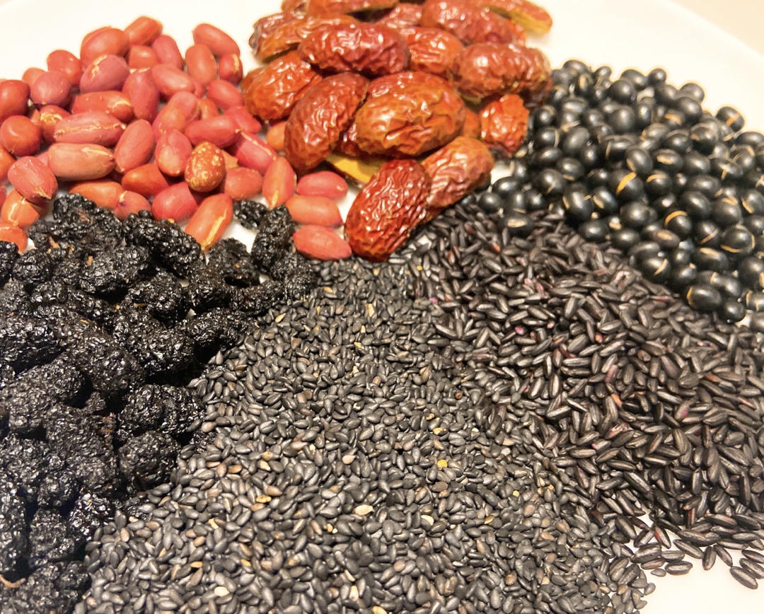 艾喵家 做过 2021年04月11日 自制黑芝麻粉我家的小朋友最近不爱喝牛奶了,得想办法给她整点早上喝的。准备了黑芝麻、黑豆、黑米、桑葚、红枣、红皮花生🥜、核桃所有的材料全部炒熟之后再磨粉,无任何添加,早餐的时候来一碗再合适不过了。 2021-04-11