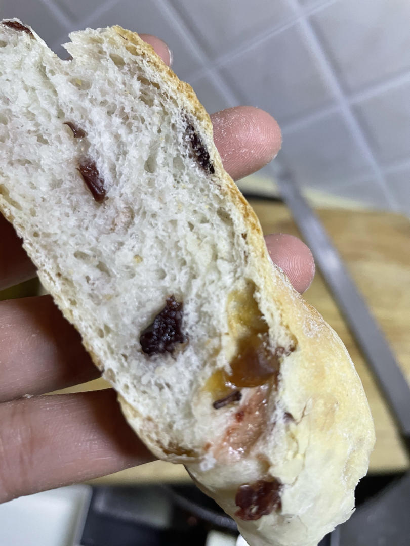 加了干果的面包真的好香啊?吃了还想吃,但是发过头才烤,这点有点伤心💔