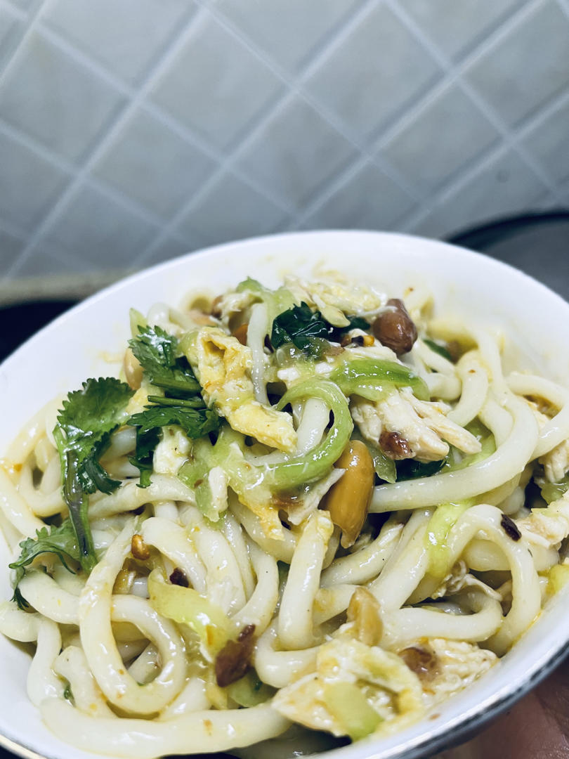 做了鸡丝拌面,味道还真不错,孩子挺爱吃