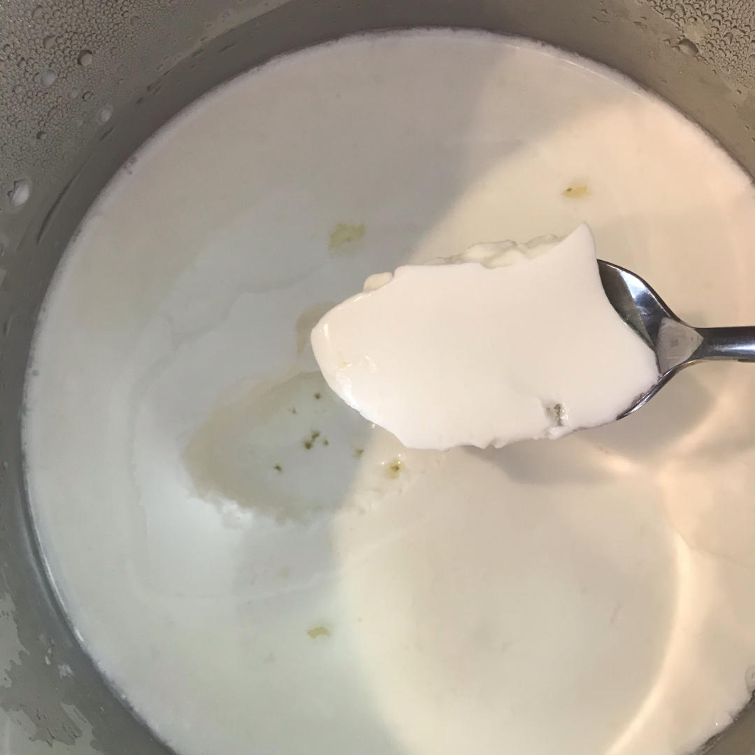 牛奶煮去了大概25%的水再做的,延长了半小时共8.5小时发酵,浓稠多了