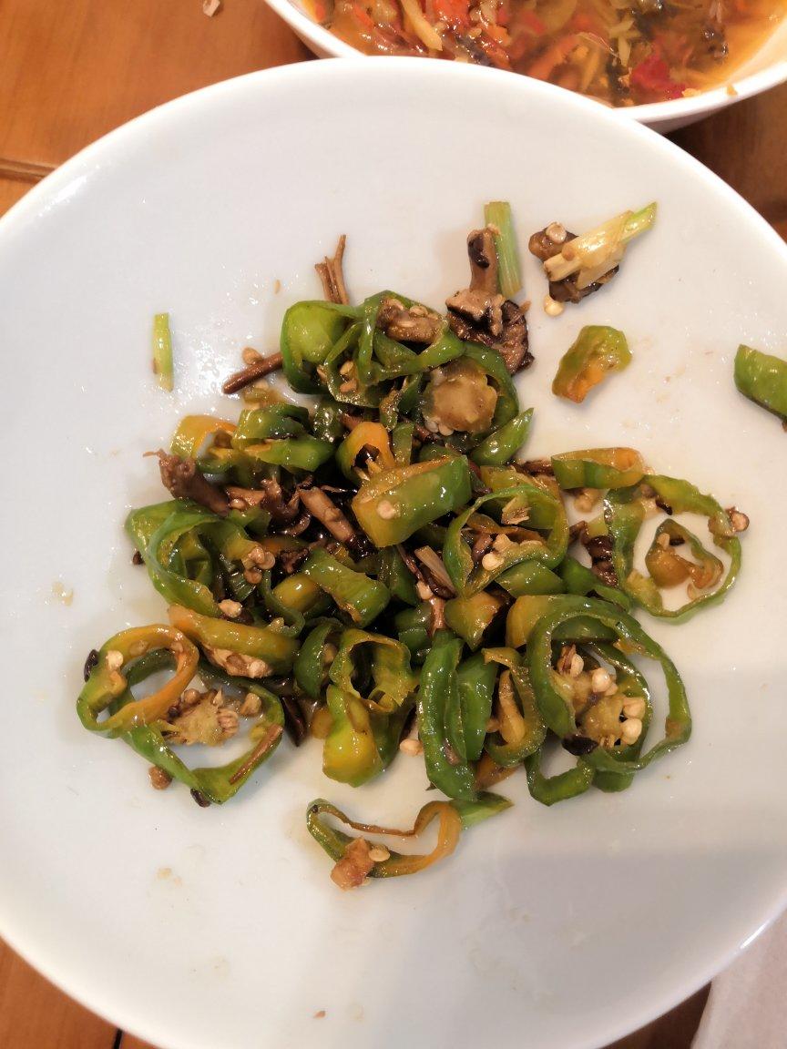 想变超人 做过 【快手菜】青椒炒茶树菇 吃完才想起拍照。老公没看菜谱,直接先爆炒茶树菇,再倒入辣椒一起炒,最后放点盐和酱油,完工!别的都没放居然也好吃!第一次做茶树菇!#晚餐•2021年4月21日# 2021-04-21