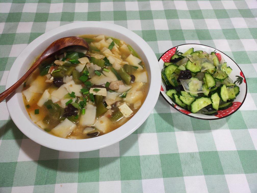 炝锅面,黄瓜拌粉皮