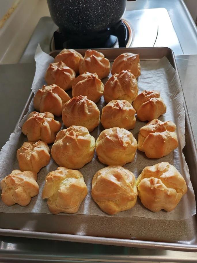 danshoki 做过 泡芙(非黄油版) 挤满奶油,放冰冻,好好吃😌记录:温度时间设定:中层,210度,20分钟;调温,180度,20分钟(最后5分钟视上色情况而定,可调至上火加风)。实际温度时间(由于温度计放网下,温度可能偏高。下次把温度计放网上离门近的地方):3分钟后降至190度到底;5分钟升至200度;8分钟升至210度;10分钟升至225度,泡芙顶部开始微微着色;15分钟升至230度到顶。调温后重新计时,5分钟后降至200度;而后升至210度。 2021-04-30