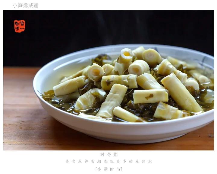 宁一时令 做过 时令菜 小笋烤感齑宁波人嘴里的小笋指的是小满时节山野里的野山笋。其实品种还不少,同一种野山笋,在余姚、奉化、宁海会有不同的叫法。到了宁波市面上因其个头较小,长的细长,城里人又分太不清,便都叫成了小笋。在宁海胡陈,老乡告诉我,最好吃的是满(鳗)笋,小满时节才有的野山笋。用早上刚拗来的小笋,加点咸齑,舀上点咸齑卤,煮上半小时,不放一点油,便是乡下人春日里再平常不过的下饭。但看是家常的菜,过了时节就要再等一年了,更为况只有最新鲜、最白嫩的小笋加上腌得恰到好处的雪菜,才能成就这道只被称之为“清口”的时令菜。 #时令菜# 2021-05-10