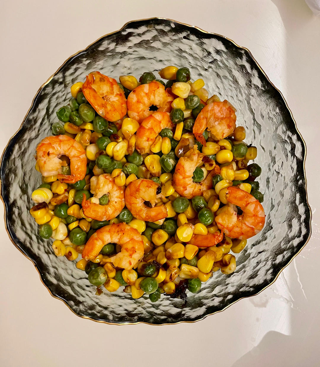 #虾仁炒玉米粒、豌豆#