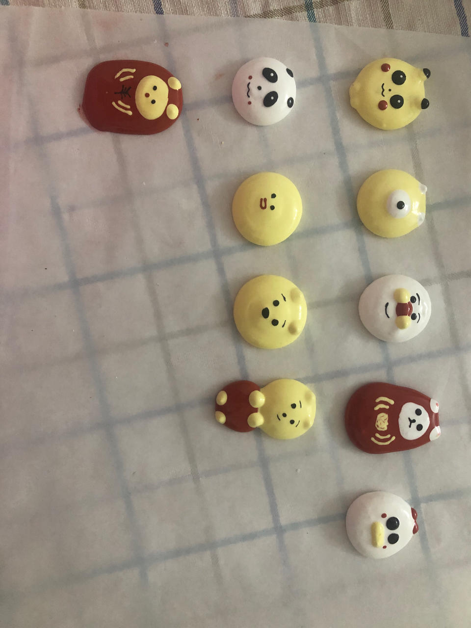 蛋白糖配方是蛋清与砂糖1:2,凯度蒸烤箱后部热风90℃60分钟,开裂了,色素轻微掉色,下回得降低温度延长时间