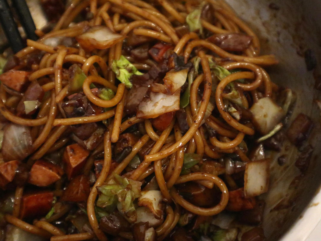 韩式干炸酱面,加很少的水,蔬菜基本上都是炒熟的。比加很多水再勾芡味道好很多~