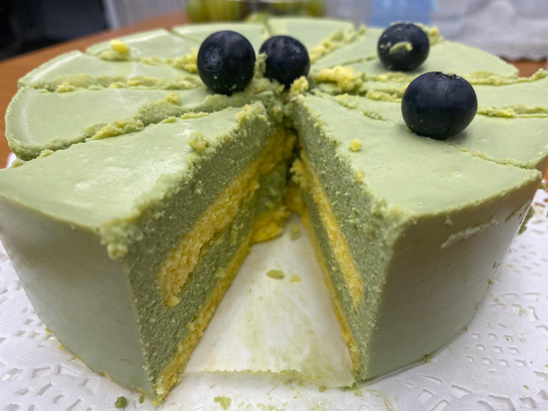 黄桃燕麦酸奶慕斯蛋糕,做了两个,一个加了加了抹茶粉,颜色和味道太爱了!