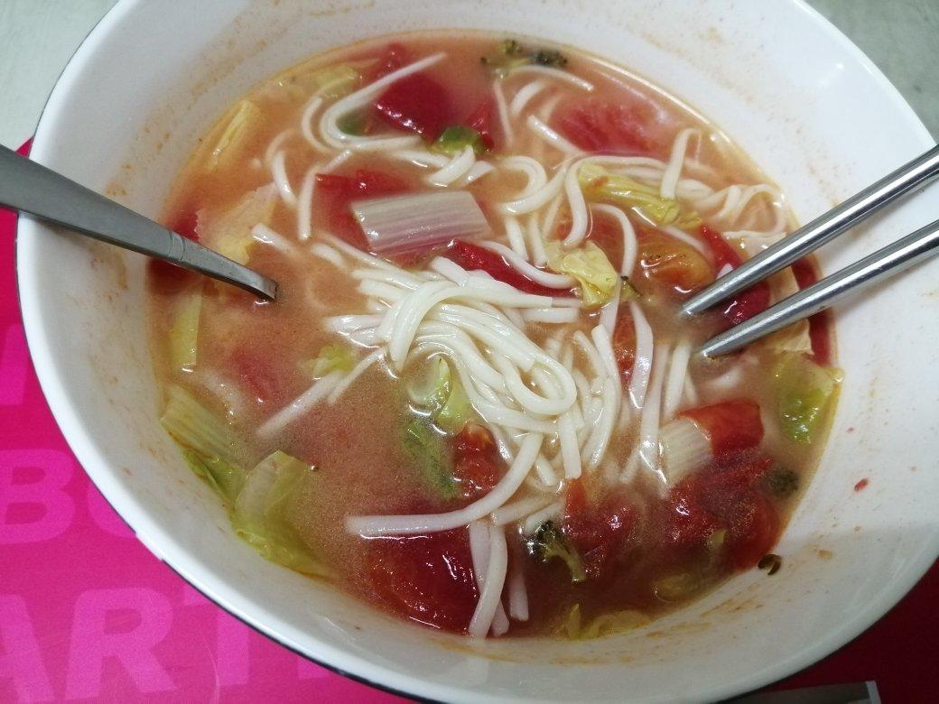 剩下的番茄和白菜一起煮了面条 太懒了我 凑合着吃 意外的好吃