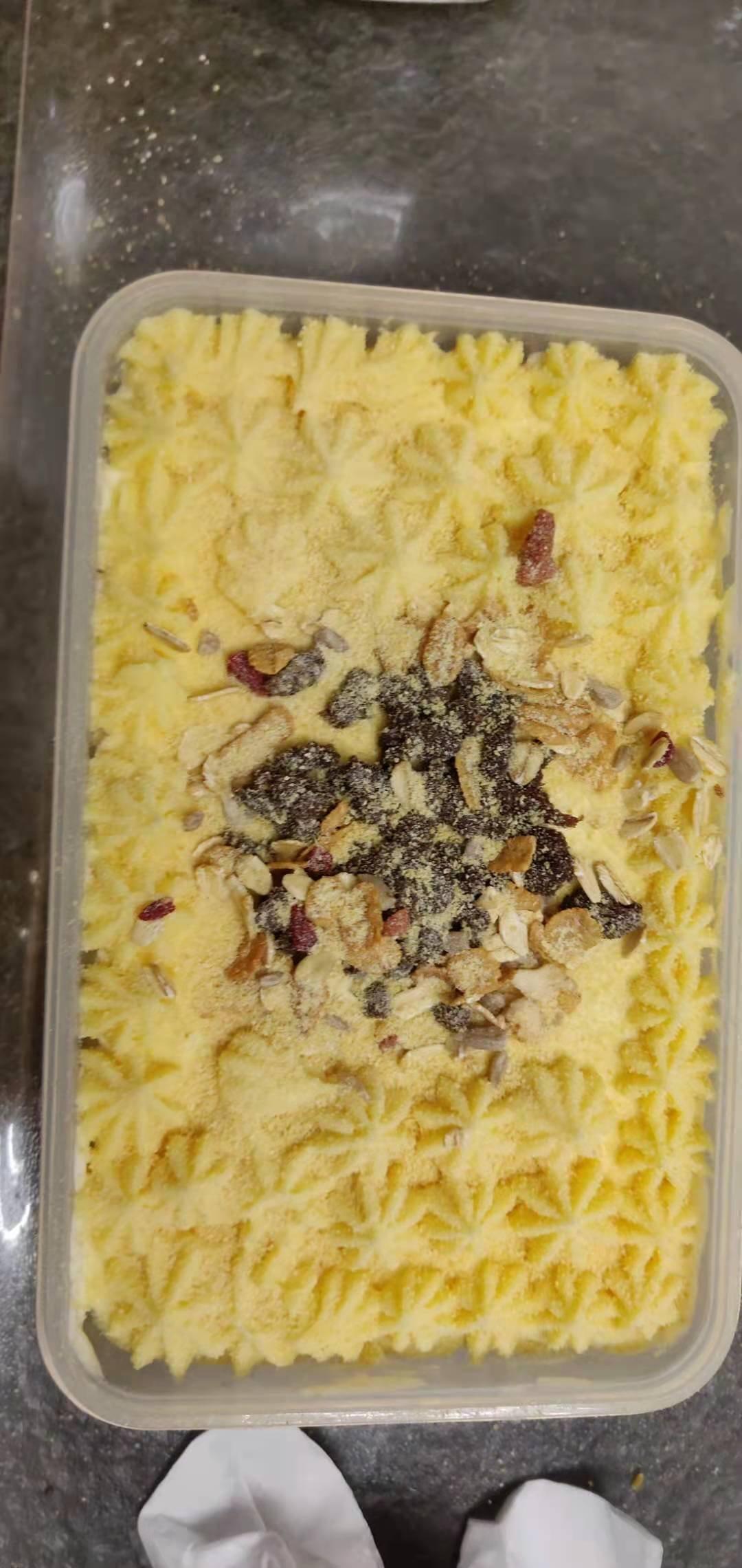 盒子太大了,豆乳没够用,最后中间用一些麦片填上了😂