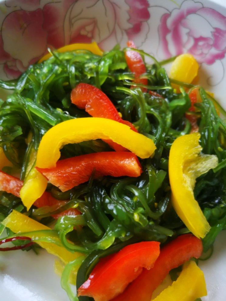彩椒拌裙带菜