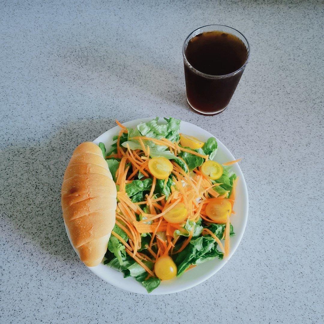今天开场又是清爽的沙拉,海盐卷和冷萃☺️