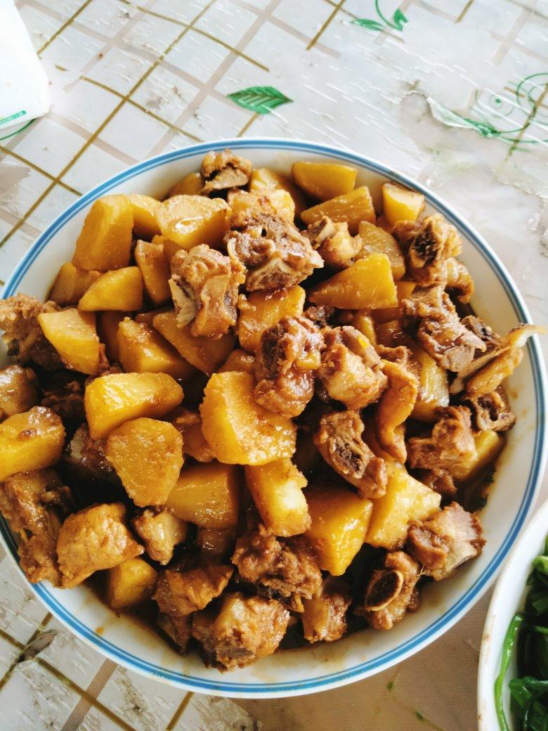 土豆焖排骨。孩子们抢着吃,美味!
