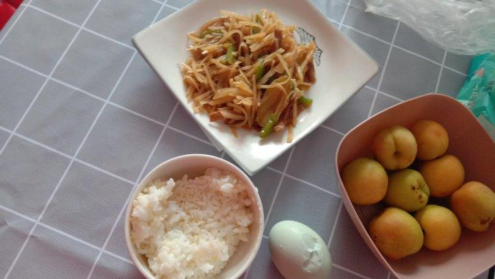 今天新换桌布啦😋一个人的午餐分享青椒肉炒土豆丝,觉得还是放米醋的好吃😋