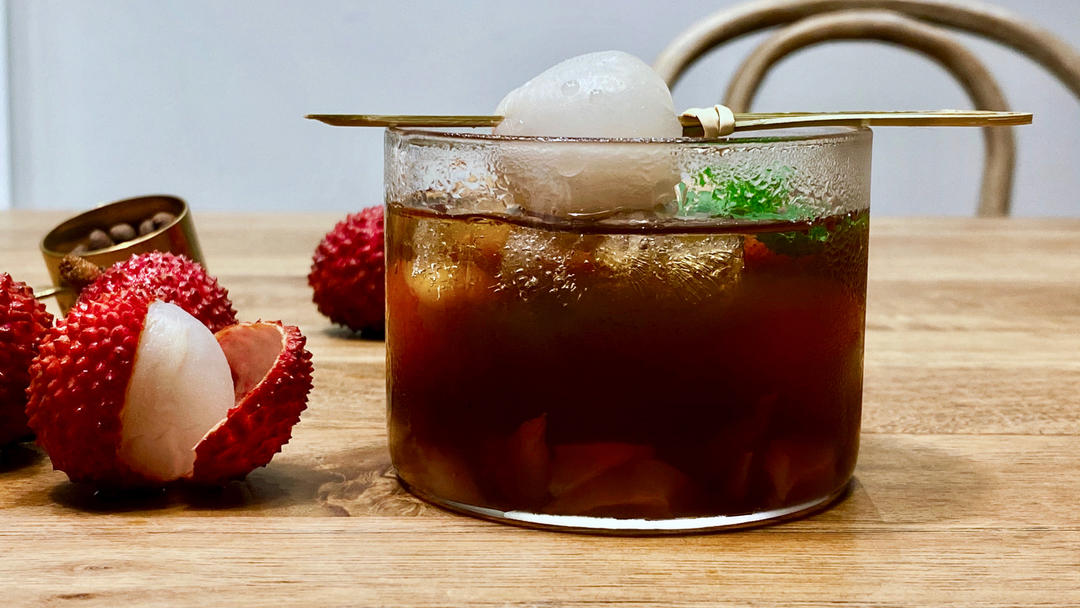 手冲美式+荔枝果肉+冰块=荔枝冰咖啡