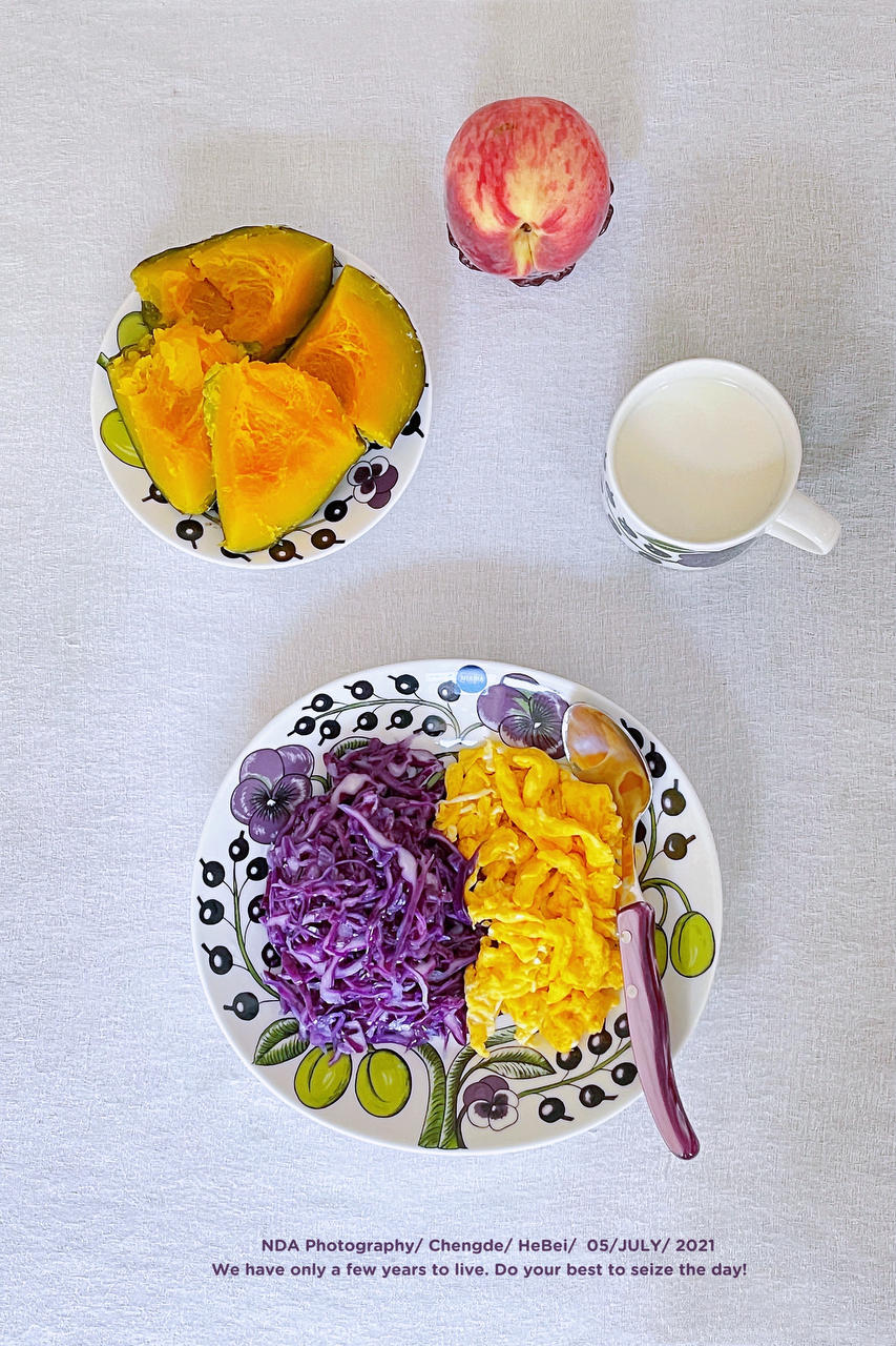 听雪美食NDA 做过 早餐•2021年7月5日 #早餐•2021年7月5日# 你简单,世界就是童话;你复杂,世界就是迷宫。 —宫崎骏大爱紫色,虽难驾驭!尤为可爱!今早减脂餐-南瓜+鸡蛋+紫甘蓝+牛奶。 2021-07-05