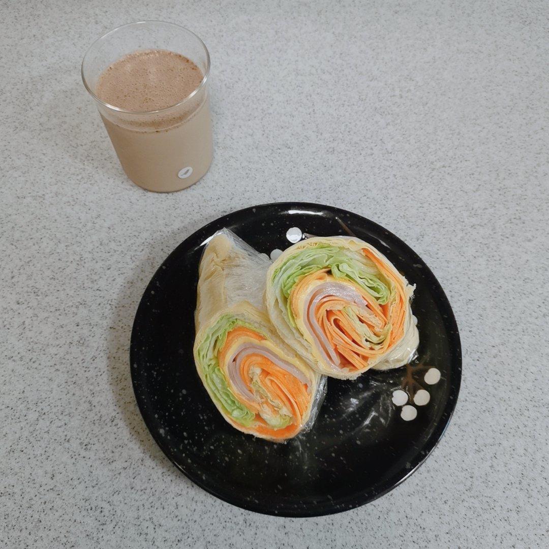 今早继续吃卷还有蛋白粉牛奶😋