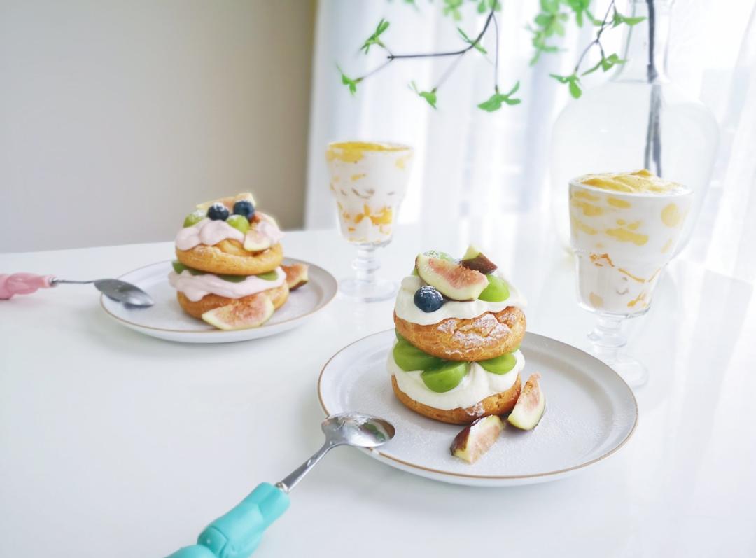 泡芙、奶油、水果的融合