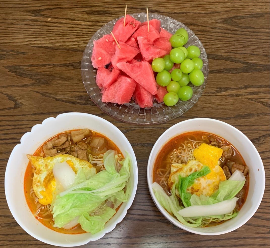 7月8日早起时间六点十分,运动一小时。今日份早点肉丝面、水果。爱生活,爱自己!
