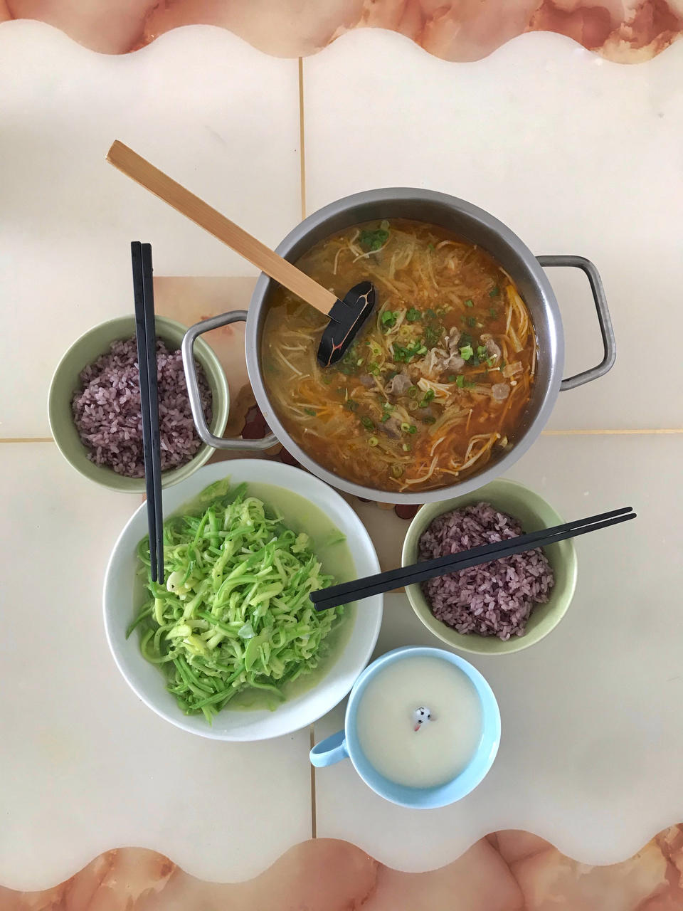 学做饭的张大宝 做过 午餐•2021年7月10日 久违的光盘!hahahahaha今日份午餐:酸汤肥牛(好吃!加了金针菇和青笋丝,川娃子的辣椒酱和酸汤肥牛料都经受住了考验!)清炒西葫芦丝 +自制茶颜悦色奶茶#午餐•2021年7月10日# 下午还吃了妃子笑冰醉小龙虾,山竹,辣皮子拌面,简直perfect!! 2021-07-10