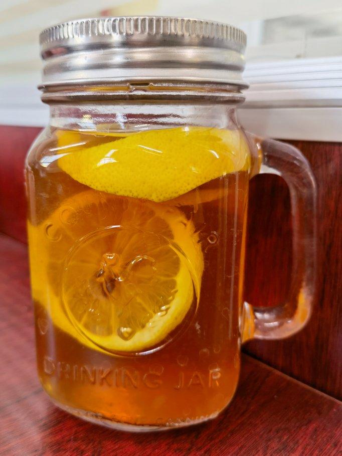 人生不过吃吃吃吃吃喝玩乐 做过 一劳永逸版冰红茶/冻柠茶/柠檬红茶 柠檬红茶用新鲜柠檬是真的有点麻烦。一包5g红茶,接近满杯的开水,泡温过滤,加8g半勺蜂蜜融化,半个柠檬边上部分挤汁中间部分切片。整体甜味、茶味偏淡。#早餐•2021年7月13日# 2021-07-13