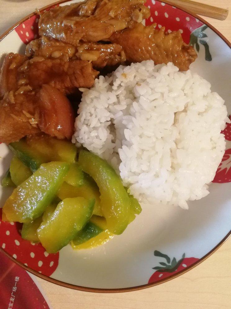 炒南瓜 红烧肉和鸡翅