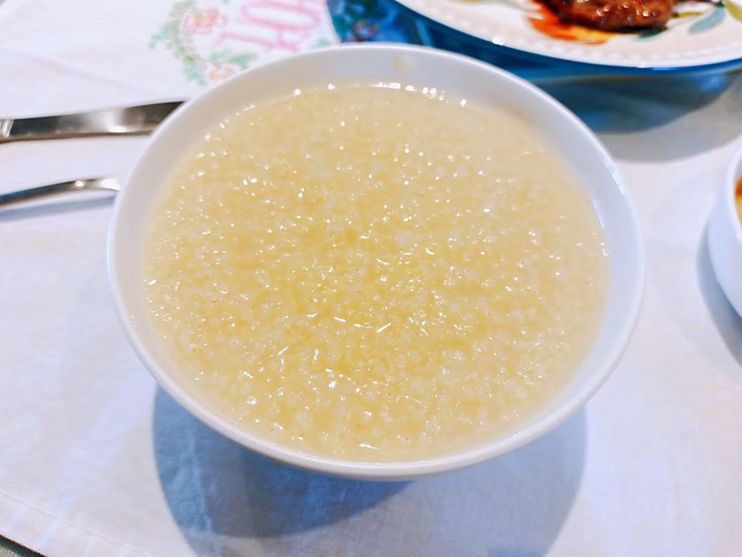 # 早餐,2021年7月5日,小米粥,上脑牛排,玉米,油条,麻球。好好吃饭,开心生活!