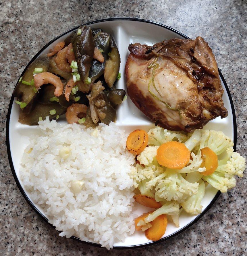7.16午:酱油鸡,茄子烧海米,炝花菜