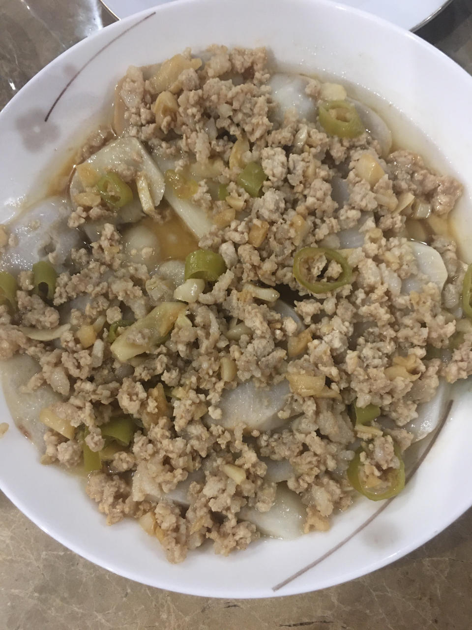 好吃 普道芋头切片铺底。西门子蒸箱30分钟