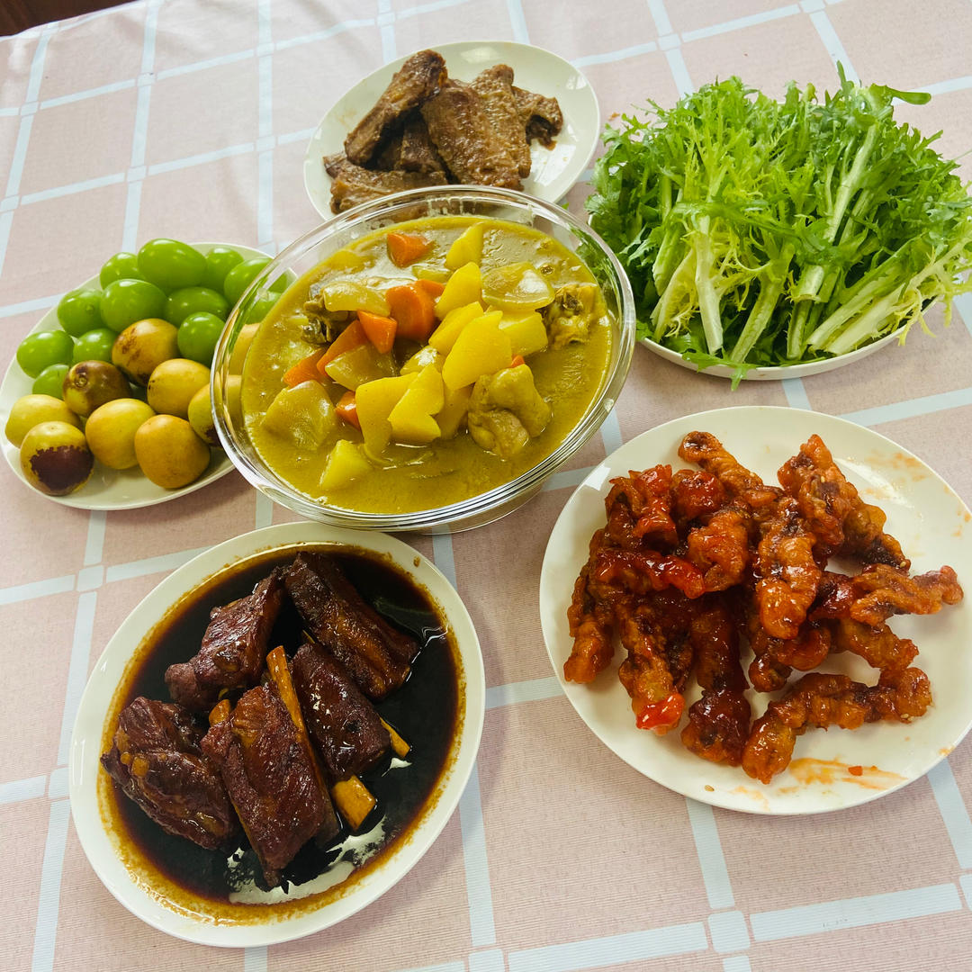 咖喱鸡+糖醋里脊+红烧带鱼+糖醋排骨