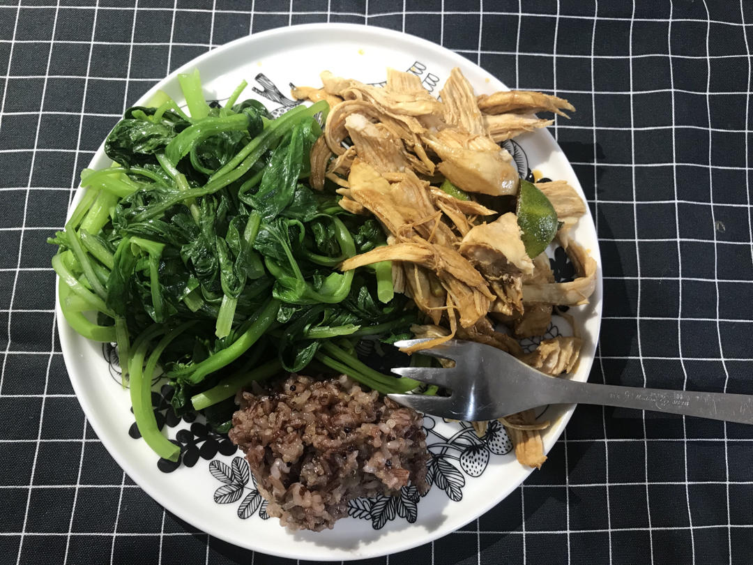 豆豆毛豆啊 做过 午餐•2021年8月3日 泰式拌鸡丝150g(没有小红椒了,只用了两个青柠和酱油也很美味,青柠真是yyds啊)青菜红米糯米藜麦大米饭30g嗯还是菜饭分开好啊吃了肉菜再吃饭,饭挺好吃的有嚼头像糯米饭#午餐•2021年8月3日# 2021-08-03