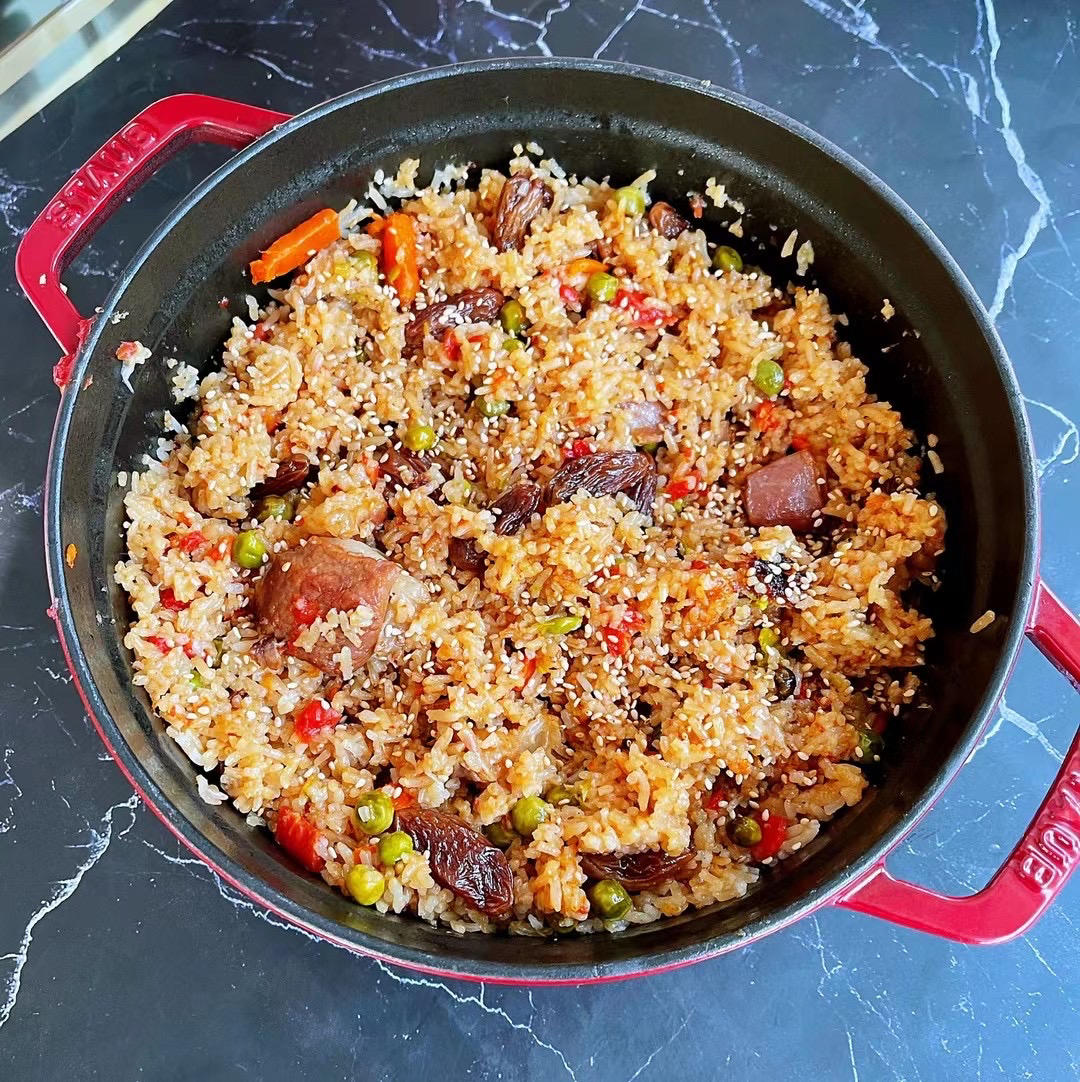 开锅做了一锅羊肉手抓饭,香[色][色][色]