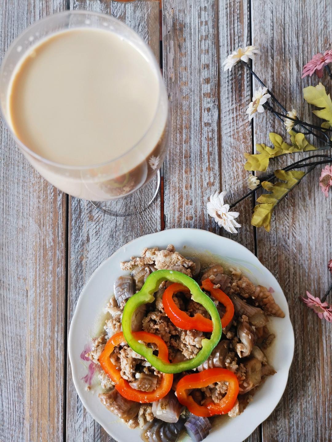肉末茄子、奶茶