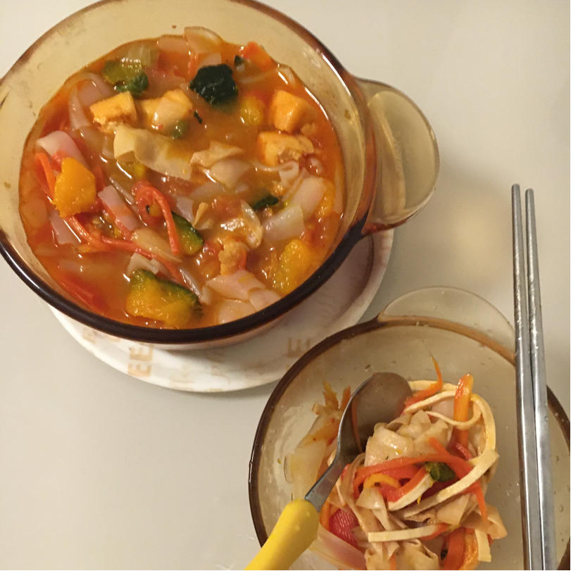 泡菜南瓜番茄胡萝卜豆腐泡河粉锅
