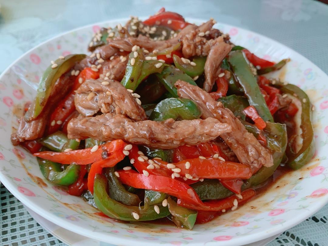黑椒牛柳。窍门是炒牛柳时热锅冷油。