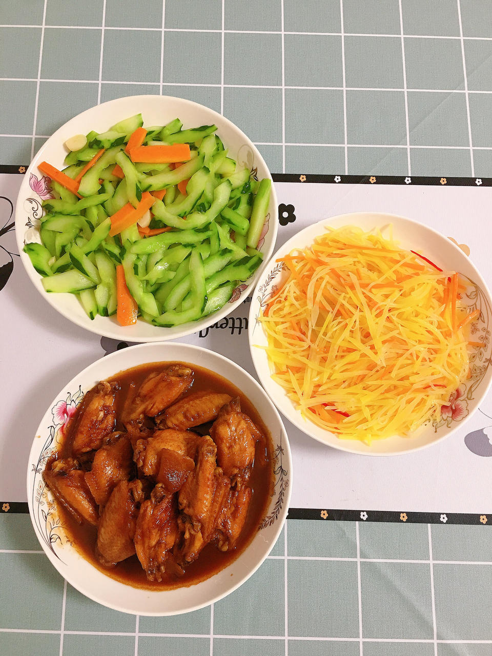 晚餐:可乐鸡翅,土豆丝,炒青瓜
