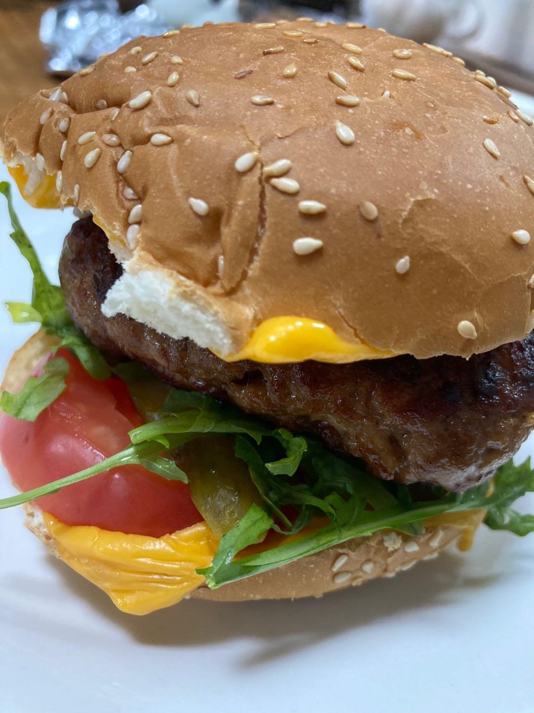 手机用户6426_if6c 做过 超详细汉堡牛肉饼|附自制汉堡搭配#Healthymeals#减脂必撸16 非常成功,配了芝麻菜,酸黄瓜,西红柿,洋葱,两片奶酪和黄芥末酱,孩子很喜欢吃。制作核心是抓和拍打,肉团很劲道。谢谢#美味猪肉汉堡🍔# 2021-08-19