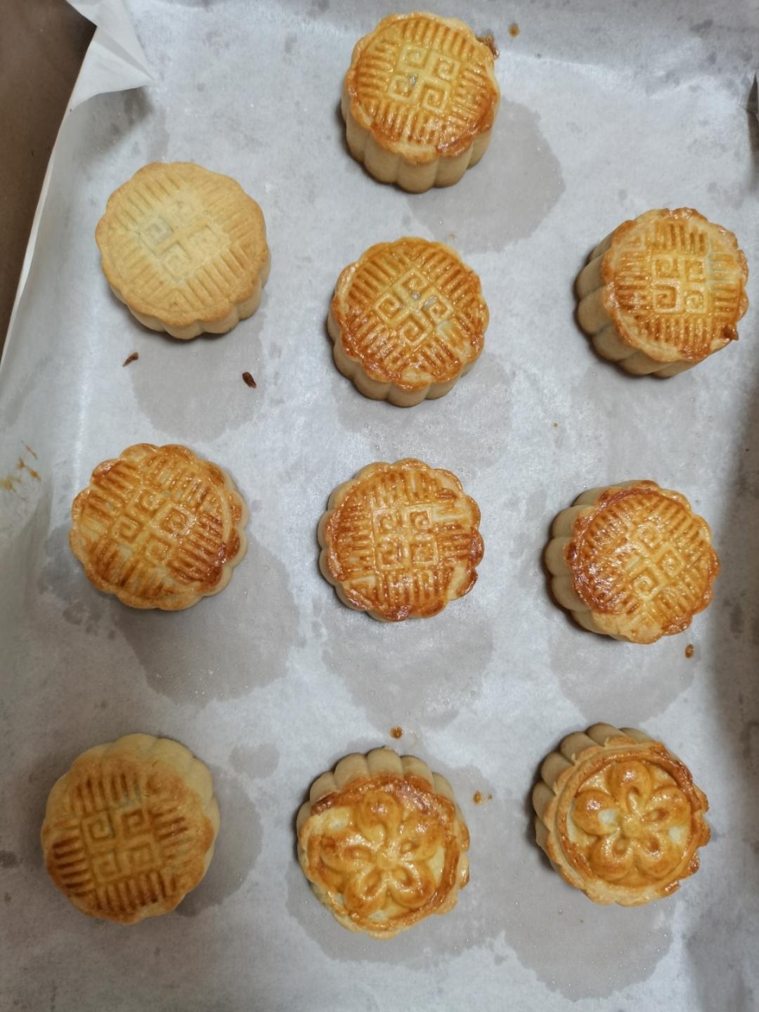 中秋节前第一个月饼,今晚做了酥皮豆沙月饼,饼皮很酥,配方减半做了十个月饼,没有吉士粉,用了奶粉代替了,颜值还可以哦[愉快]