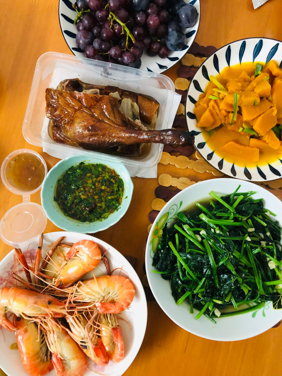 余记爱下厨 做过 👪晚餐 #👪晚餐# 葱烧南瓜|清炒菠菜|蒸罗氏虾|烧鹅先生今天生日,没有过生日的习惯那就买餐好的吧,自从有了小辰就很少在外面吃了,一方面自己做比较实惠,另一方面自己做饭比较卫生,偶尔在外面吃总是轻易踩雷 2021-08-28