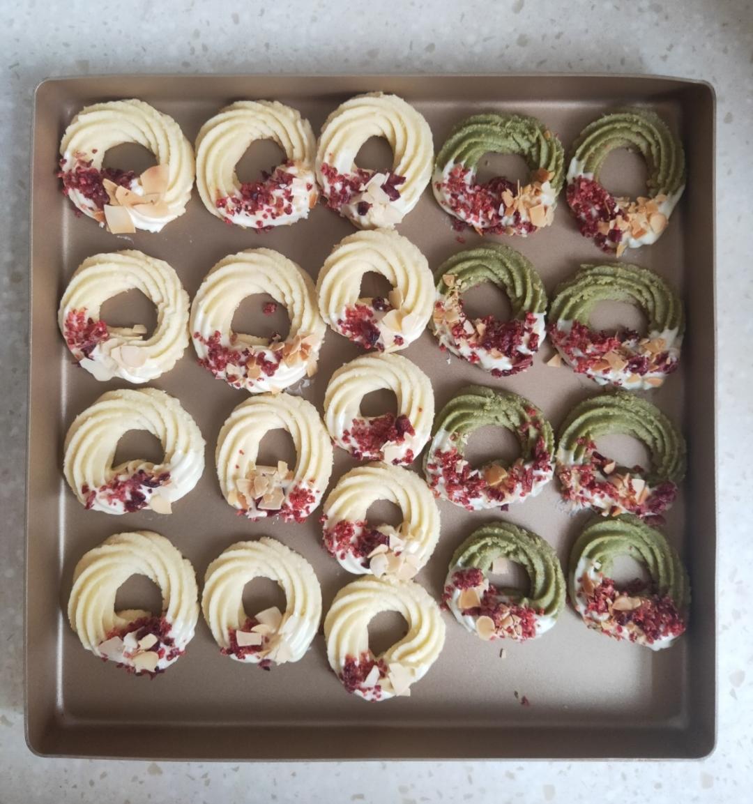 酥到掉渣❗️烤箱必做的美食,抹茶花环曲奇