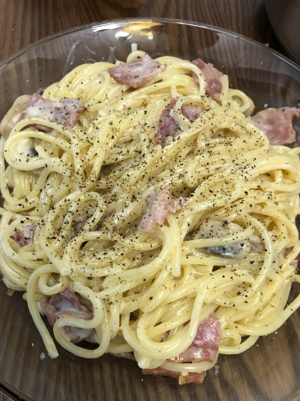 白蘑菇奶油培根意面