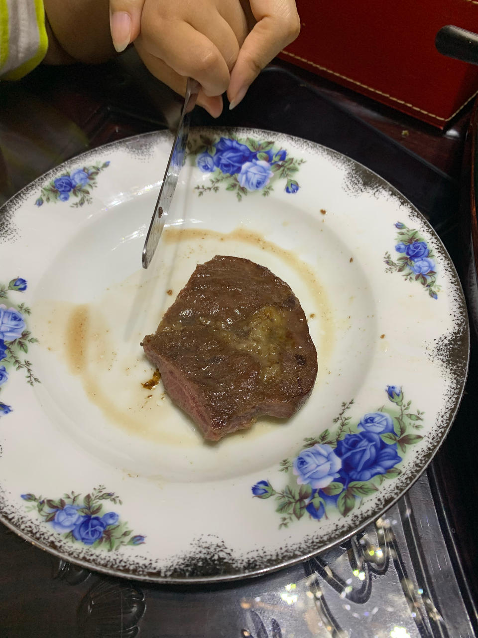 冷冻牛排直接放进空气炸锅,两面各烤5分钟感觉才熟