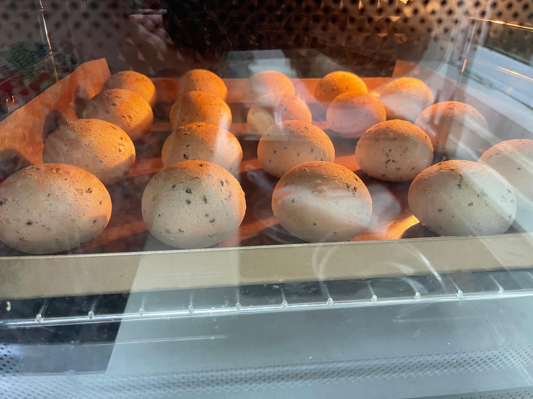 300g麻薯粉我正好放满一个大烤盘,预热充足,180度25分钟开热风。