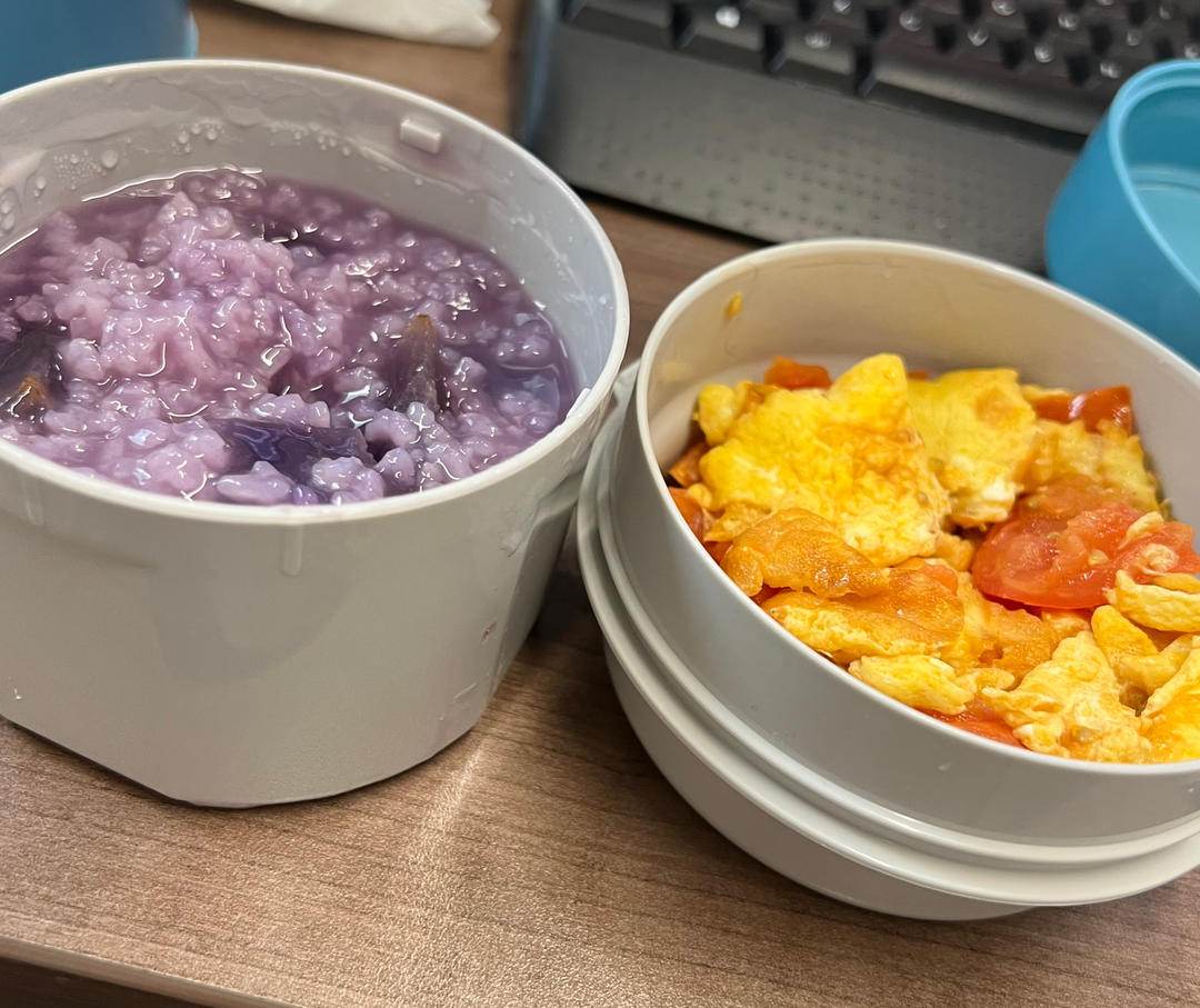 紫薯稀饭+番茄炒蛋