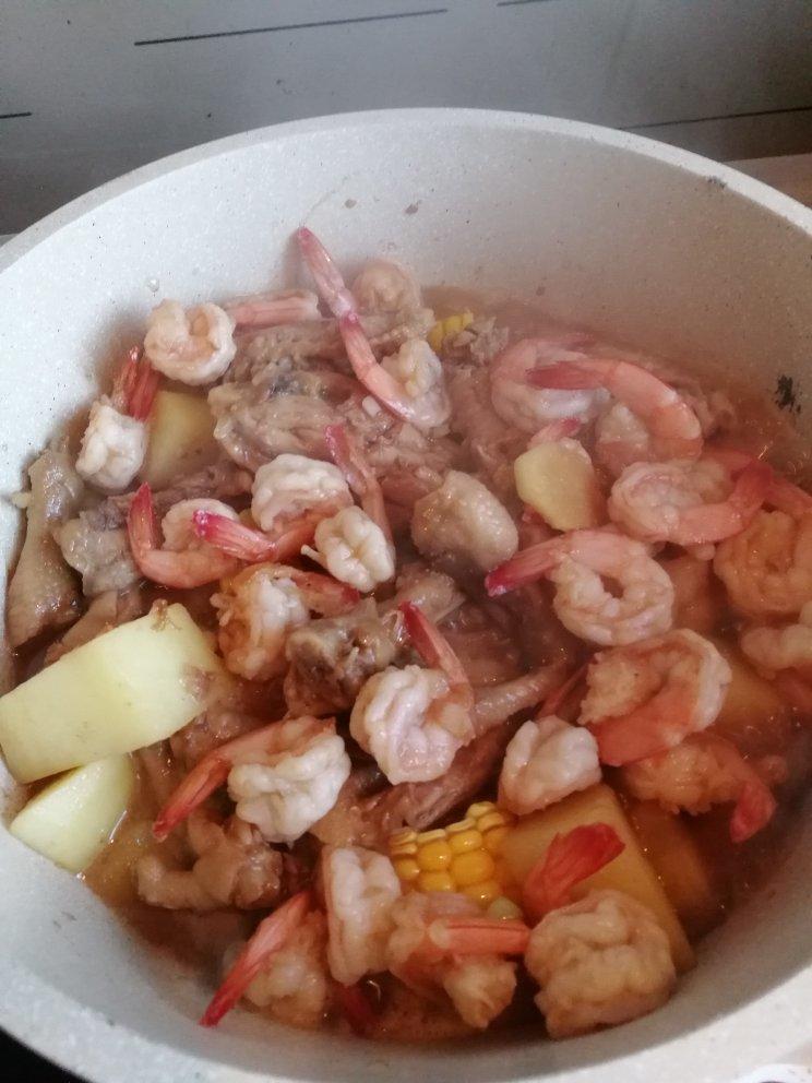 鸡爪鸡翅虾煲(还有土豆玉米金针菇豆芽)
