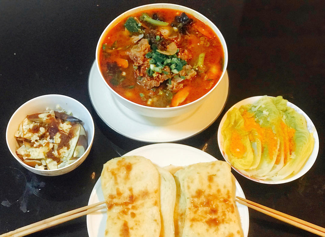沙茶酱和蟹黄酱各蒸一盘,豆瓣酱煮一锅,开心吃菜😋🍆🥬🥦🧅🥩