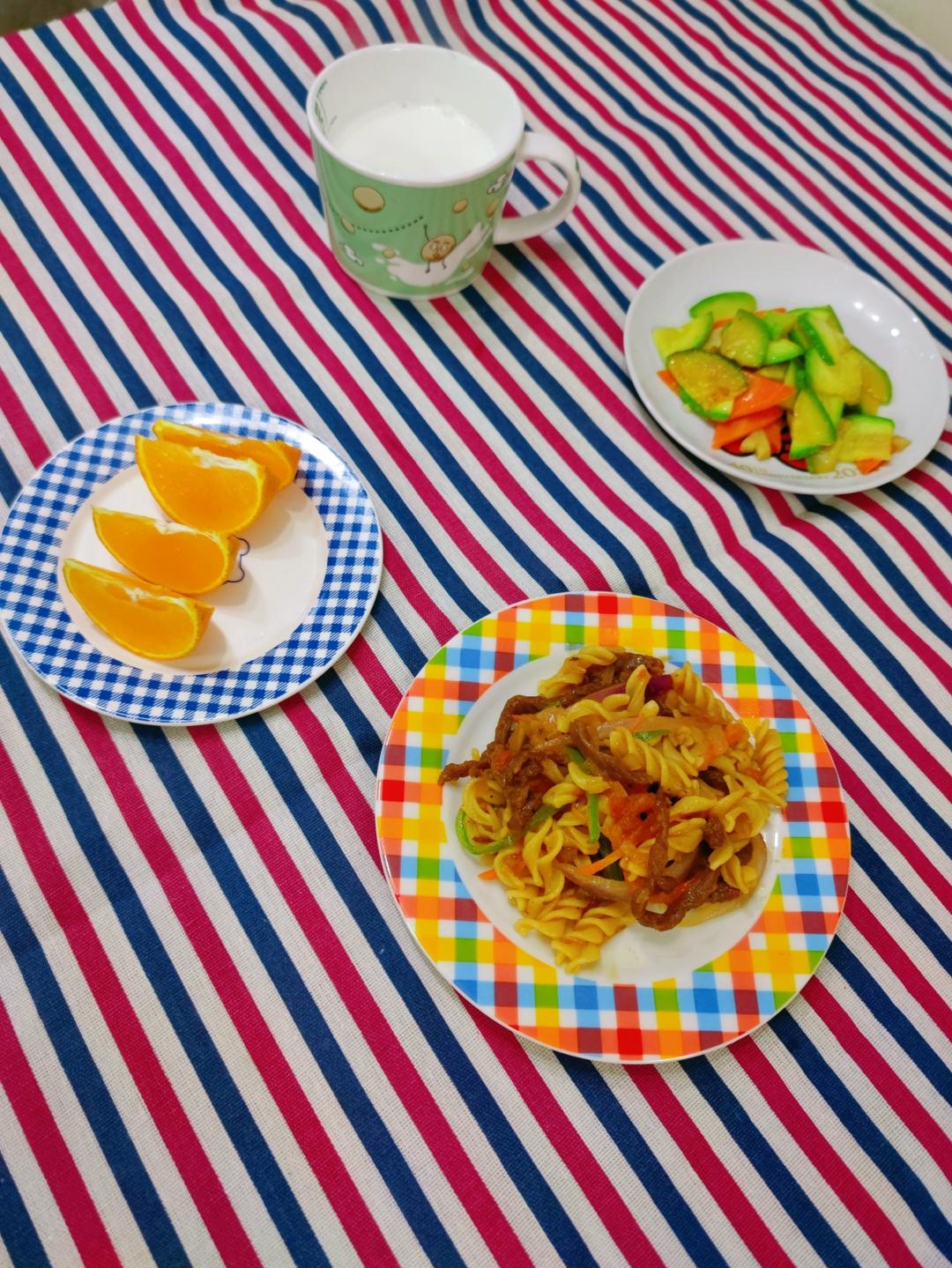 13.牛柳意面➕清炒西葫芦➕橙子➕牛奶🥛